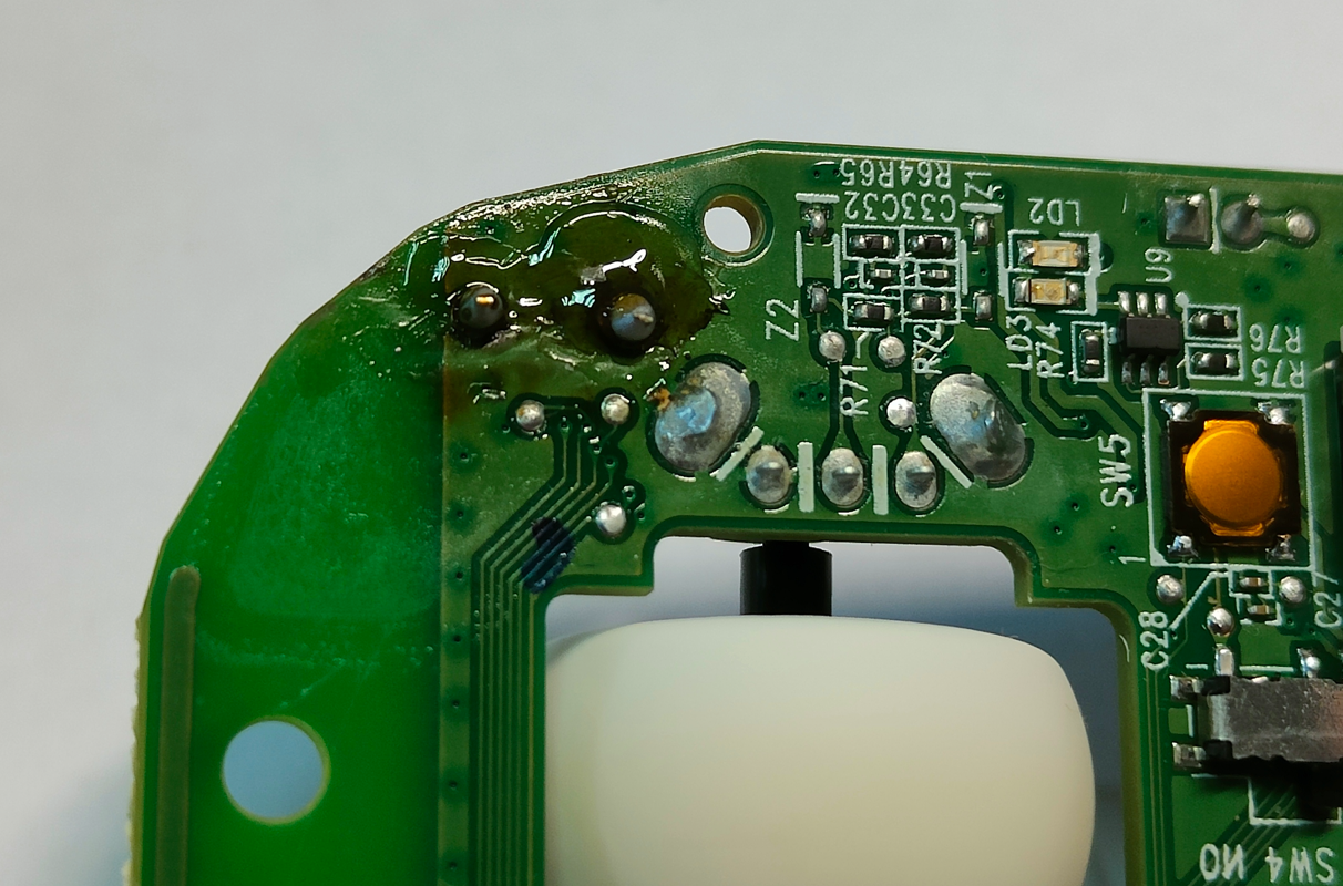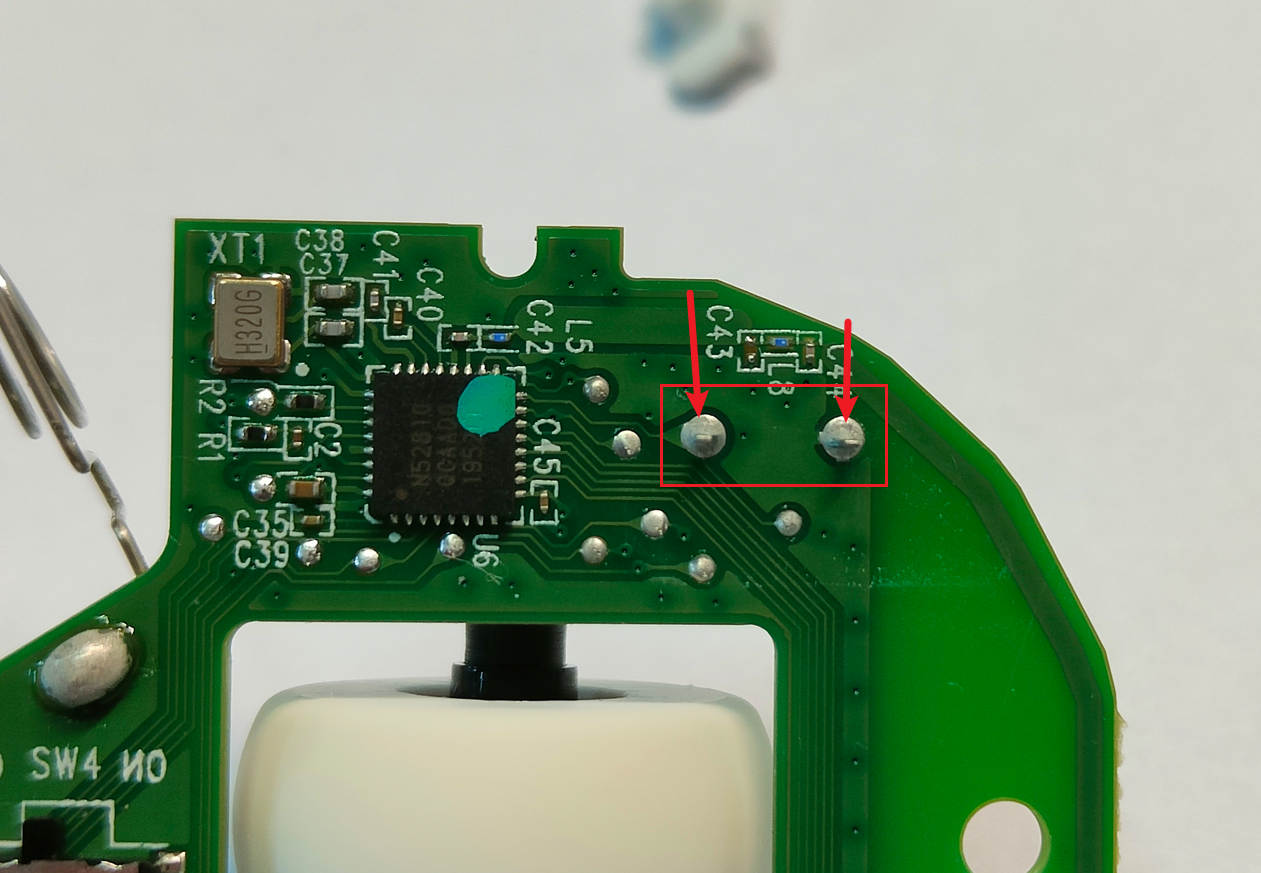 只要把这两个地方的焊锡熔化,就可以把旧的拆下来,换微动啦。😲