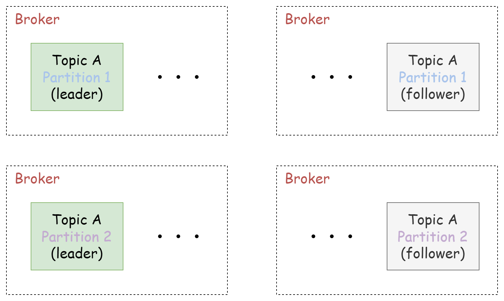 与 Reids Cluster 类似,Kafka 通过「Partition 多副本」的方式,解决了高可用问题。 在 Kafka 集群中,每个 Partition 都有多个副本,保存了相同的信息。