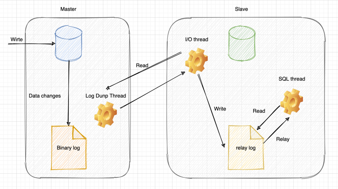 主从复制指主服务器(master server)上,任何修改和数据结构变更的事件,都会被写入到日志文件 bin log 中,从服务器(slave server)读取主服务器上的日志文件中的事件变更,并在本地重放执行。