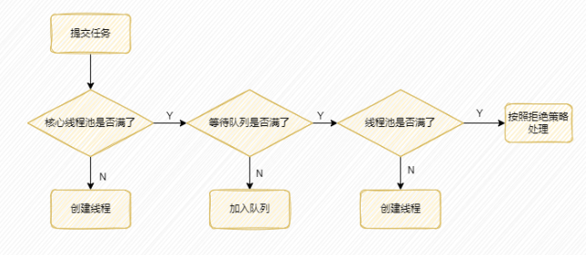 - 核心线程数已满时,会将任务暂存到等待队列,直到线程资源可用;当等待队列已满时,会开始创建非核心线程